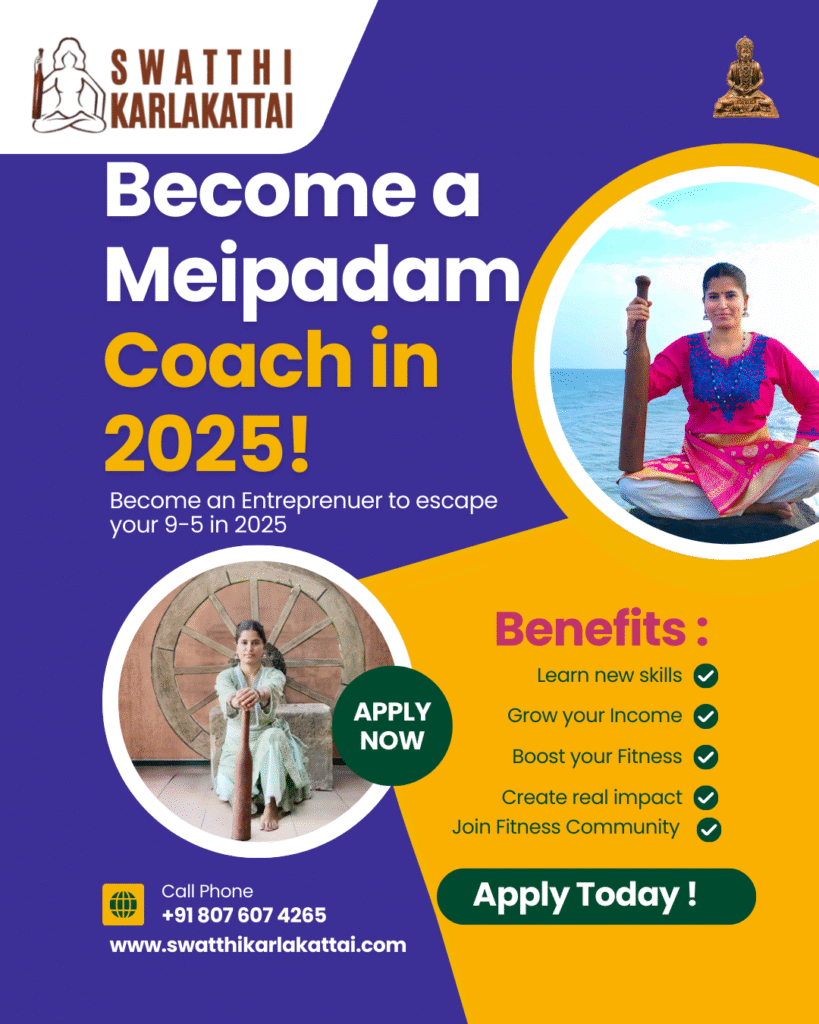 Embark on an empowering fitness journey that transcends the ordinary, merging physical strength with spiritual depth. Meipadam and Karlakattai—⏰ time-honored warrior training regimes are designed to build resilience, balance, and inner strength.